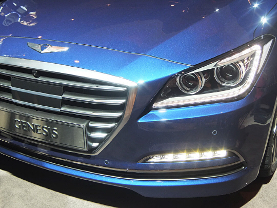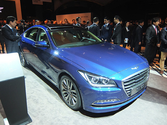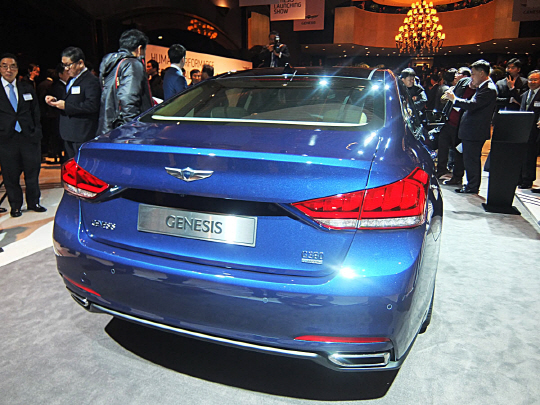 현대차는 26일 서울 하얏트호텔 그랜드볼룸에서 신형 제네시스 신차 발표회를 가졌다. 신형 제네시스는 최첨단 후륜구동 세단 개발'을 목표로 2009년부터 48개월 동안 총 5000억 원을 들여 탄생시킨 신차다.