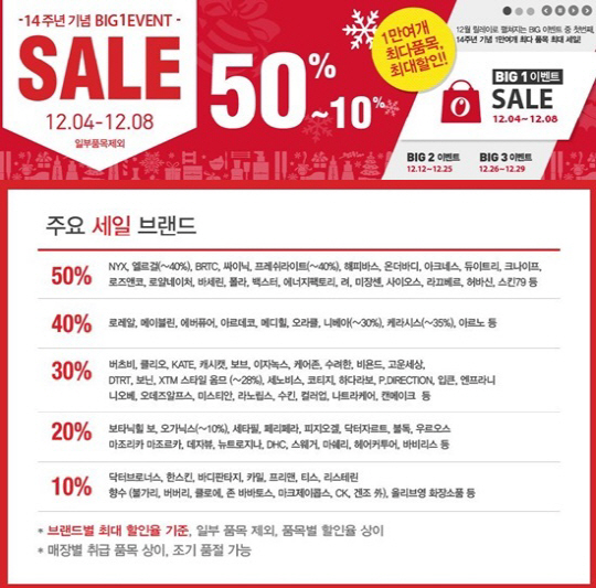 또한 12일부터 25일까지 BIG 2 이벤트가 진행되며, 오는 26일부터 29일까지 BIG3 이벤트 등 12월 한 달 동안 릴레이로 할인행사를 실시, 한 달 동안 많은 사람들에게 할인의 혜택이 주어진다.