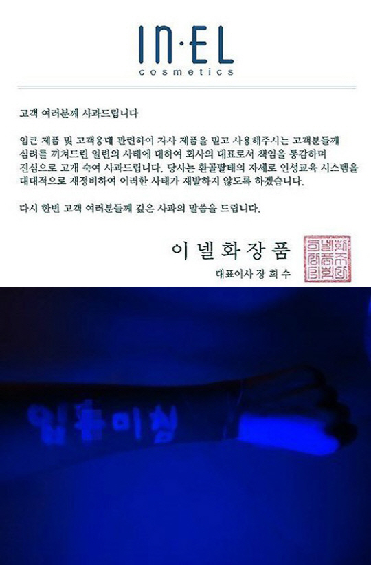 '형광비비' 논란에 휩싸인 화장품 브랜드 입큰(IPKN)측이 공식 사과문을 게재했다.