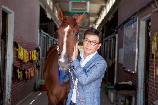 ◇연말연시 나눔문화 확산을 위한 경주마들의 릴레이 성금 기부가 이어지고 있다. '네버렛미다운'과 탤런트 길용우 마주.