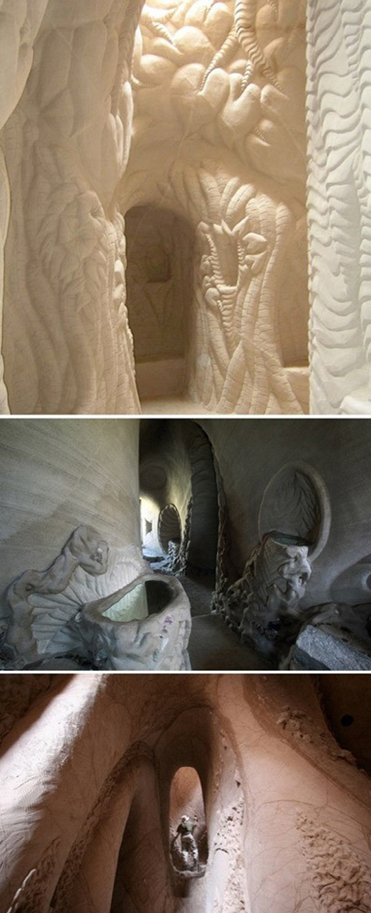 공개된 사진에는 한 예술가가 동굴 벽면을 조각하고 있는 뒷모습과 함께 동굴 내부 벽면에 조각된 모습이 장관을 이루고 있다.