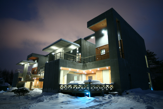 동계 올림픽 유치지인 평창의 대표적인 펜션인 '하늘닿은펜션'은 건물 높이 12m, 면적 528㎡의 웅장한 철근 콘크리트구조로 이루어진 현대식 펜션이다. 세련된 외관과 총 8개의 모던하고 유니크한 객실 인테리어가 감성적인 고객들의 마음을 사로잡는다. 하늘닿은펜션은 잊지 못할 추억거리를 만들어 주는 디테일한 아이디어가 가득하다.