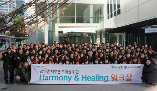 하나생명(대표 김태오)이 6일 새출발을 다짐하는 전직원 워크숍을 개최했다. 2014년 1월 이전할 신사옥(중구 순화동 소재)에서 진행된 이번 워크숍은 임직원 120여 명이 참여, '하모니&힐링'을 주제로 희망퇴직으로 마음 고생한 직원들을 위로하는 시간을 가졌다.