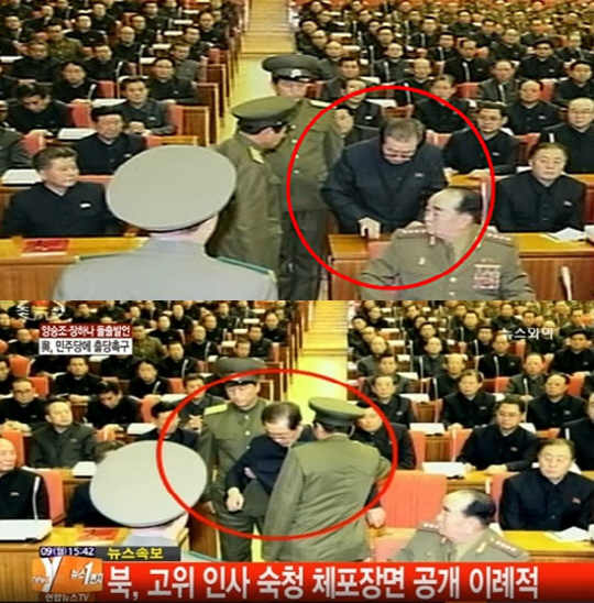 9일 조선중앙TV는 오후 3시 18분쯤 전날 열린 '노동당 정치국 확대회의에 관한 보도'에서 장성택 체포 장면이 담긴 사진을 이례적으로 보도했다.