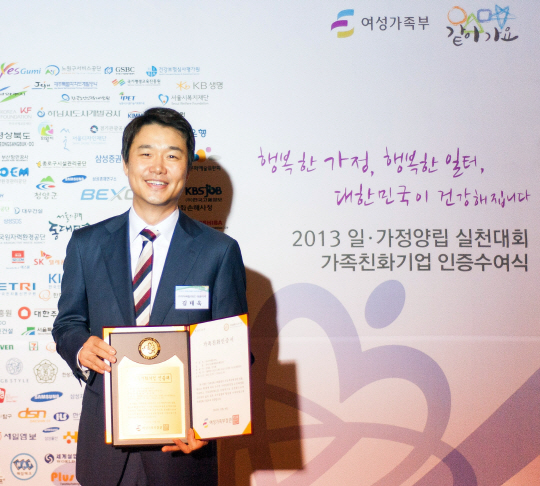 아이패밀리SC의 김태욱 대표가 여성가족부의 가족친화 인증을 받았다. 사진제공=아이패밀리SC