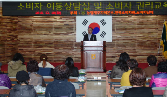 한국소비자원이 10일 제주도 제주시 농협중앙회 제주지역본부에서 소비생활 취약 계층인 농업인, 지방 소비자 등을 대상으로 이동상담 및 소비자 피해 예방교육을 실시했다.