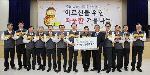 KB금융그룹(회장 임영록)은 11일 어르신들의 따뜻한 겨울 나눔을 돕기 위해 전국 2천여 독거노인 세대에 겨울나눔 생활용품세트를 전달했다.