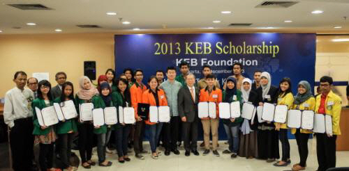 외환은행나눔재단(이사장 윤용로 / www.kebfoundation.org)은 지난 11일 자카르타에 위치한 인도네시아한국외환은행에서 현지 저소득층 가정 우수 대학생 70명에게 장학금을 지원하는 '2013 인도네시아 환은장학금 수여식'을 개최하였다고 12일 밝혔다.