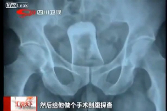 의료진은 X-레이 검사 결과 그의 항문에 유리컵이 있는 것을 발견하고 제거했다.