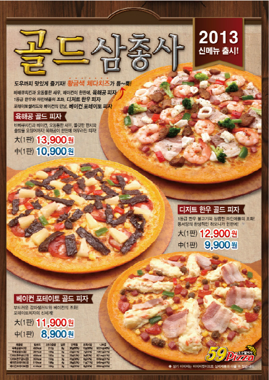 국내산 100% 쌀과 보리, 조, 밀, 검은깨로 만든 웰빙도우피자 '오구쌀피자'는 신메뉴 '골드삼총사'를 출시했다. 골드삼총사 시리즈는 도우 끝까지 맛있게 즐긴다'는 콘셉으로 도우 끝에 풍성한 황금색 체다치즈를 토핑하여 풍부한 맛을 더해 인기를 이어가고 있다. 골드삼총사는 육해공 골드, 디저트 한우 골드, 베이컨 포테이토 골드 3종으로 구성돼 있다.