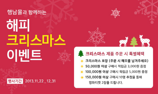 71년 전통의 생활자기 명가(名家) 행남자기(대표 김유석, www.haengnam.co.kr)가 온라인 직영 쇼핑몰 행남몰(www.haengnammall.co.kr)에서 '해피 크리스마스 이벤트'를 진행한다.