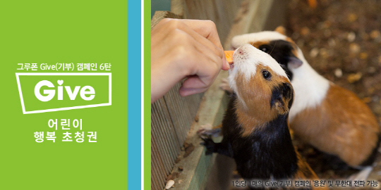 글로벌 리딩 소셜커머스 기업 그루폰(대표 김홍식, www.groupon.kr)이 아동복지전문기관 초록우산 어린이재단(회장 이제훈) 및 부산 키주스토리와 함께 연말을 맞아 부산 지역 내 저소득층 가정 어린이 200명을 도심 속 미니동물원으로 초청하는 '그루폰 Give(기부) 캠페인'을 오는 익월 31일(수)까지 2주간 진행한다.