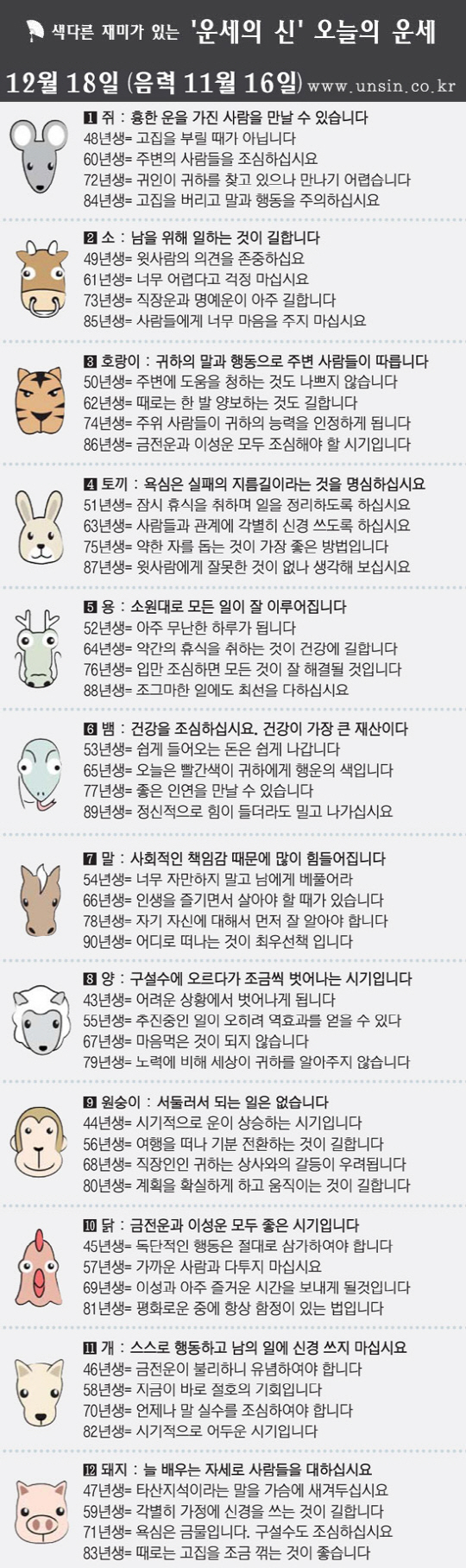 [직장인을 위한 오늘의 운세] 2013년 12월 18일 수요일(음력 11월 16일)