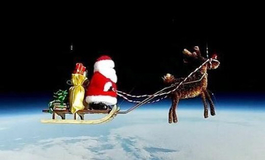 공개된 영상에는 루돌프가 끄는 썰매를 탄 산타클로스가 지구 대기 위를 달리는 모습이 담겨있다.