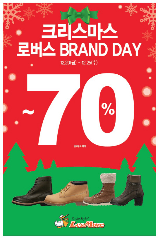 국가대표 슈즈 멀티숍 레스모아가 20일부터 25일까지 '크리스마스 BIG세일'을 실시한다.