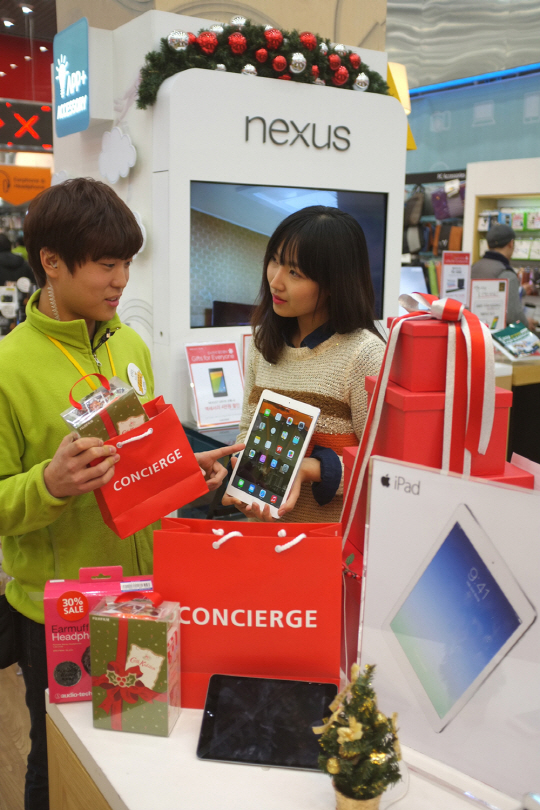 가장 핫한 IT제품으로 손꼽히고 있는 '아이패드 에어'와 '넥서스 7'을 한 곳에서 비교하며 구매할 수 있는 컨시어지에서는 23일부터 크리스마스 특별할인을 제공한다. 삼성카드로 결제시 아이패드 에어를 2만원 현장할인(선착순 300명) 해주고 10개월 무이자 할부도 가능하다. 또 넥서스 7 구매 시에는 액세서리 4만원 할인권을, 10만원 이상 구매 시에는 컨시어지에서 정성스럽게 준비한 크리스마스 시즌 한정판 사은품 (마우스패드,터치장갑)을 증정한다.