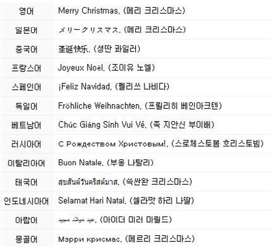 각국의 크리스마스 인사, ‘메리 크리스마스’ 말고 이렇게 많네~