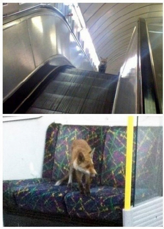 공개된 사진 속 여우는 지하철 내에 있는 에스컬레이터를 타고 위층으로 올라오는가 하면 ,지하철 내 좌석에 올라가 주변을 응시하고 있는 모습이 담겨 있다.