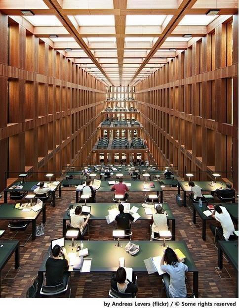 공개된 사진은 독일 베를린에 있는 훔볼트 대학교 도서관으로 거대한 크기와 높이로 탁 트인 공간을 자랑하며 학생들이 공부에 열중하는 모습이 담겨 있다.
