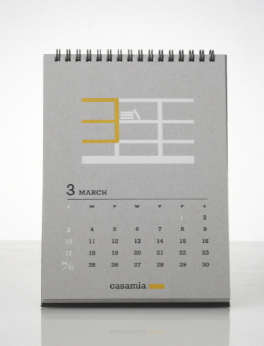 까사미아 캘린더는 '제품 속에 녹아있는 하루 하루의 시간'을 표현하기 위해 개발된 것으로 하나의 인테리어 소품이다. 책상 위 퍼니처가 되는 아이디어를 적용하여 브랜드의 유쾌한 캐릭터를 반영한 점에서 높은 평가를 받았다.
