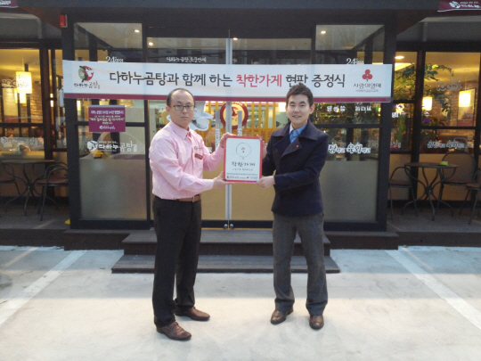 한우곰탕 전문 프랜차이즈 다하누곰탕(www.dahanoogomtang.com 대표 최계경) 구의강변역점은 지난 26일 서울 사회복지공동모금회가 연중 진행하는 착한가게 캠페인에 동참하고 현판 전달식을 가졌다.