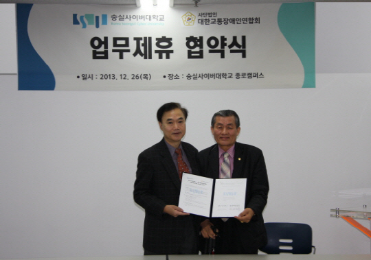 숭실사이버대학교(총장 한헌수)는 대한교통장애인연합회(회장 송병헌)와 26일(목) 숭실사이버대 종로캠퍼스에서 업무제휴 협약을 체결했다.