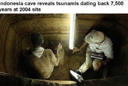 지난 25일 인도네시아 언론은 "싱가포르와 인도네시아 연구진이 수마트라 아체주 반다아체 인근 해안에서 7천500여 년 동안 쓰나미가 11차례 지나간 후 퇴적물이 그대로 보존된 석회동굴을 발견했다"고 보도했다.