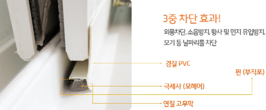 이어 "외풍차단시스템은 이같은 샷시창호의 구조적문제인 유격을 잡아주는 역할을 한다"며 "이는 창호의 구조적 문제인 유격을 막아 틈새로 들어오는 외풍을 확실하게 차단하는 동시에 소음 및 봄철황사, 꽃가루, 미세먼지유입 또한 해결할 수 있다"고 설명했다.
