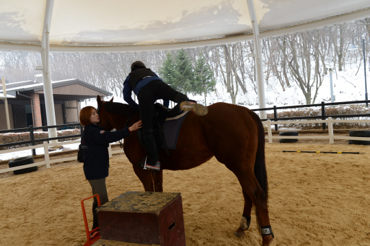 2014년은 말띠 해다. 말(馬)은 푸른 초지를 내닫는 힘찬 기운, 역동성이 떠올려지는 동물이다. 이 같은 말의 기운을 담아내는 다이내믹한 레포츠 '승마'가 겨울철 여가로 인기다. 승마는 팔, 다리, 허리, 복부근육 등 온 몸을 사용하는 전신운동이다. 특히 신체의 유연성과 다이어트는 물론, 대담성과 정신 집중력까지 기를 수 있어 몸과 마음을 다스리는데 제격이다. 때문에 요즘 여성과 청소년들 사이 인기 레포츠로 떠오르고 있다. 아울러 전국 곳곳에 승마장이 새로 문을 열며 동호인들이 증가 하는 등 귀족 스포츠라는 이미지 대신 문턱 낮은 미래의 대중 레포츠로 정착해가는 것도 최근의 트렌드 중 하나다. 서울 시청에서 자동차로 40여분 거리, 수도권에 자리해 접근성이 뛰어난 경기도 고양시 소재 로얄새들 승마 클럽을 찾아 승마체험에 나섰다.