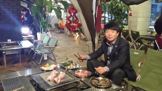 학업 스트레스를 벗어나고자하는 학생부터 일상에 찌든 직장인까지 텐트 안에서 옹기종기 모여 바비큐를 즐기며 캠핑을 만끽하고 있는 곳이 있다. 강남구 도곡동에 위치하고 있는 '캠핑아웃도어쿠킹'(02-6218-1500)이라는 숯불바비큐 전문집.