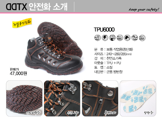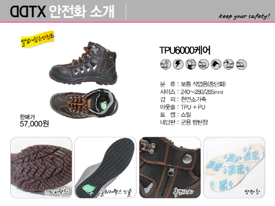또한 'TPU 6000케어', 'TPU4000케어'는 장시간 신발 착용 때문에 어쩔 수 없이 발생하는 발냄새를 잡아준 제품으로 큰 관심을 모으고 있는데, 안전화 내부에 습도조절기능이 뛰어난 실리카텍스 소재를 사용해 언제든지 뽀송뽀송한 착용이 가능하며 항곰팡이 항균기능이 탁월하여 무좀 등 발질환 억제 기능까지 있는 것으로 알려져 더욱 인기를 얻고 있다.