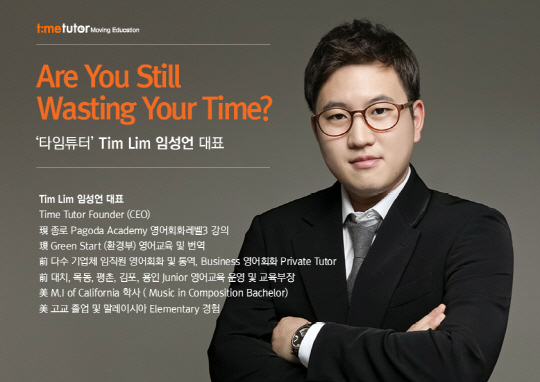 스타강사 출신의 '타임튜터'의 임성언 대표는 학생들에게 "Are you still wasting your time?"이라고 반문하며 영어고수가 되는 지름길을 알려주고 있다.