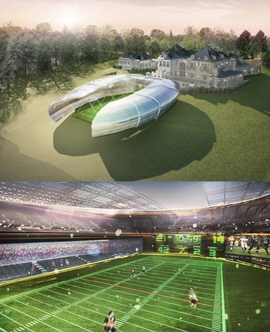 공개된 사진은 미국 캔자스시티에 있는 한 건축회사가 3천만 달러(한화 약 300억 원)가 넘는 돈을 내는 갑부들에게는 거대한 최첨단 운동장을 지어주겠다고 사업 계획을 밝힌 사진.