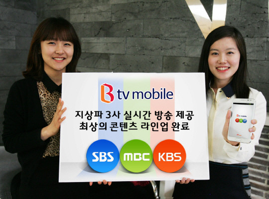 SK브로드밴드(www.skbroadband.com)는 자사 모바일 IPTV 서비스인 B tv모바일에서 지상파 3사 실시간 방송을 모두 서비스한다고 2일 밝혔다.