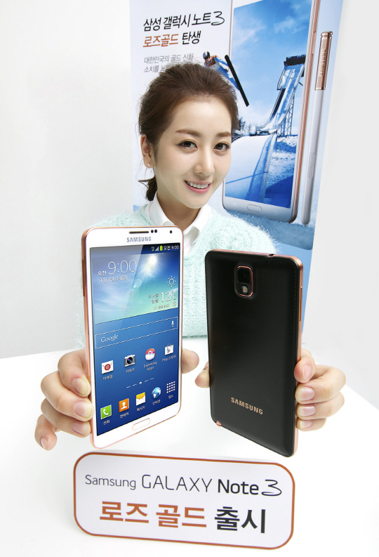 삼성전자가 '갤럭시 노트3 로즈 골드' 모델을 통신 3사를 통해 4일부터 국내 시장에 선보인다.