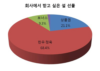 '회사에서 준 선물에 만족했는가'를 묻는 질문에는 68%가 '만족(168명)'이라고 응답했고 '불만족(52명)'은 21.1%, '보통(27명)'이라는 의견은 10.9%였다.