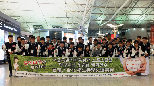 롯데리아가 후원한 '2013 서울시교육감배 학교스포츠클럽 야구리그' 우승팀이 대만 타이베이시 연식야구 올스타와의 대회를 위해 3일 출국했다.