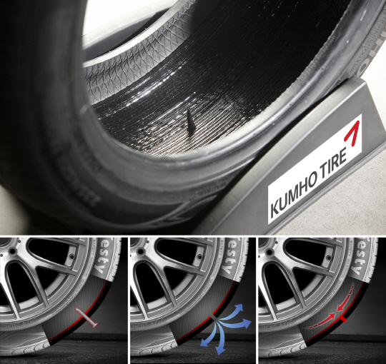 금호타이어가 국내 타이어 업계 최초로 실란트 타이어(sealant tire)를 출시한다고 3일 밝혔다. '실란트 타이어'란 이물질이 트레드(Tread: 접지면)를 관통했을 때 타이어 자체적으로 손상 부위를 봉합해 공기 누출 없이 정상적으로 주행이 가능한 신개념 타이어로 '셀프 실링 타이어(self-sealing tire)'로도 불린다.