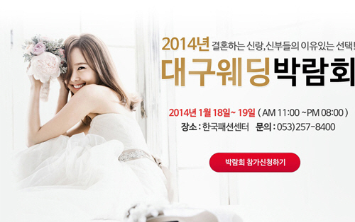 2014년 대구웨딩박람회 정보는 대구웨딩협회 박람회 홈페이지(http://weddfair.co.kr)에서 확인 가능하며, 참가 신청도 가능하다.