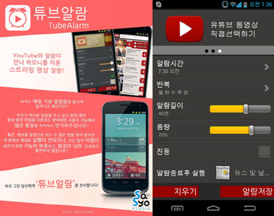 김효정 사쇼 스튜디오 대표는 "알람 기능 앱의 수요는 많지만 기대에 부응하는 앱이 부족해 기획하게 됐다"며 "향후 유튜브를 통한 프로모션과 마케팅 컨설팅, PPL 광고 기획·개발 등 연관성 있는 사업영역으로 확장할 계획"이라고 말했다. '튜브알람'은 현재 안드로이드 버전을 지원하고 있다.