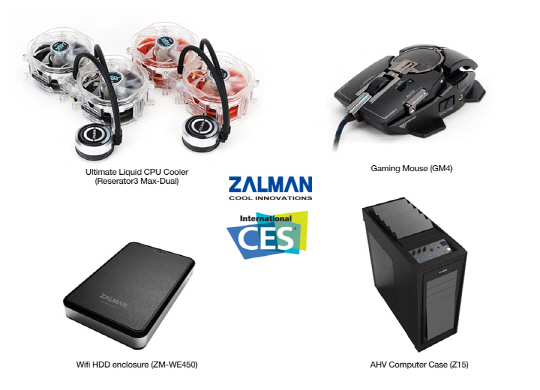 잘만테크가 '2014 CES'에서 선보이는 신제품은 PC 중앙처리장치 쿨러 제품 2종, PC케이스 2종, PC 파워서플라이(전원공급장치) 3종, PC 마우스 1종, 와이파이 외장하드 및 차량용 블랙박스, 스마트폰 필름형 안테나 등 총 15여종 등이다.