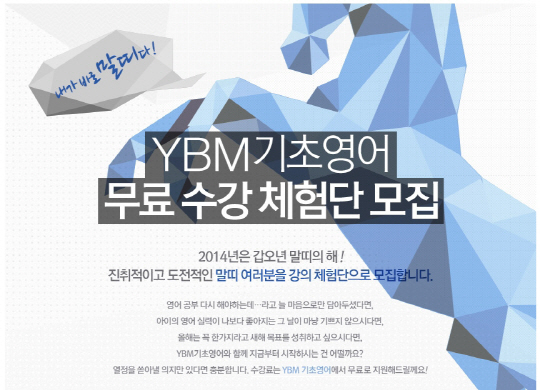 YBM기초영어가 2014년 말띠해를 맞이해 말띠 생을 대상으로 무료수강체험단을 모집한다. 사진제공=YBM시사닷컴