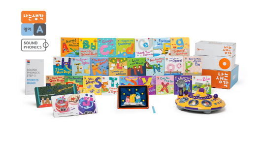사운드 파닉스 스텝1은 유아전용 태블릿PC '씽클탭', 파닉스 학습 앱 패키지 14개와 리뷰 앱 패키지 3개, 플레이 앱 패키지 2개, 미니북 앱 패키지 1개와 미니북 26권 및 학부모 가이드 1권, 교구 1종(파닉스 드럼)으로 구성됐다.