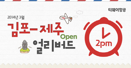 티웨이항공이 2013년 7개 항공사 중 김포-제주 탑승률 1위(평균 91.2%)를 기념해, 3월 김포- 제주 노선의 얼리버드 이벤트를 실시한다.