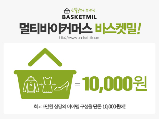 바스켓밀은 '다수 상품 초저가 선택구매'라는 컨셉트로 실제 2만~3만원에 판매했던 상품에 대해 1만원으로 2~3가지 상품을 고객 마음대로 구매할 수 있는 온라인 기반 솔루션을 제공한다.
