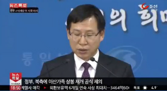 김의도 통일부 대변인은 "북한 측이 우리 제안에 조속히 호응해 오기를 바란다"며 "이번 이산가족 상봉 행사 재개로 첫 걸음을 잘 떼어 남북관계에 새로운 계기가 만들어지기를 기대한다"고 전했다.
