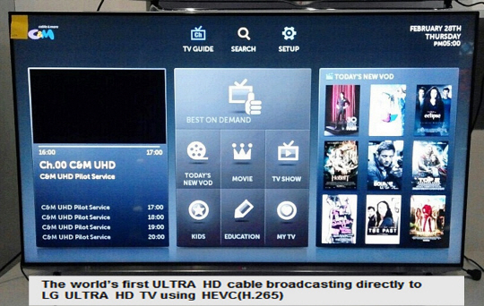 2014년도 LG 울트라HD TV모델을 구매하는 모든 사용자들은 씨앤앰 권역 내에서 UHD방송을 볼 수 있으며 LG 매직리모컨을 이용해 셋톱박스가 내장된 것처럼 편리하게 씨앤앰의 방송 채널, VOD 콘텐츠 등 모든 서비스를 이용할 수 있다.