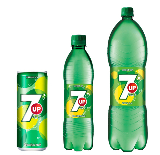 롯데칠성음료가 7일 글로벌 탄산 브랜드 '세븐업(7UP)'을 출시한다. (용량 및 예상 편의점 판매가격 : 250ml캔 900원, 500ml페트 1,300원, 1.5L페트 2,100원)