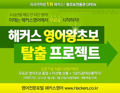 영어 전문 포털 해커스영어(www.Hackers.co.kr)가 기초영어학습자들을 위한 '영어 왕초보 탈출 프로젝트' 콘텐츠를 무료로 제공한다.