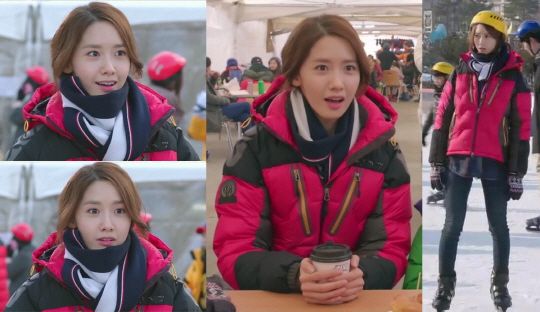 이때 윤아는 핫 핑크 컬러의 패딩으로 귀엽고 사랑스러운 분위기를 뽐내며, 추운 겨울 날씨의 야외 스케이트장에서도 본인 특유의 트렌디하고 러블리한 패딩 패션을 완성했다.